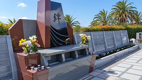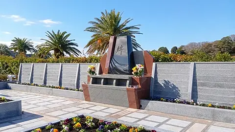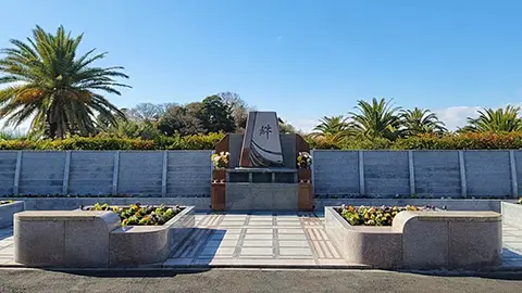 永代供養墓「絆」がある「やすらぎの里 南葉山霊園」は、三浦半島の最高峰・大楠山を背に相模湾を一望するなだらかな丘陵地にし、湘南と南葉山の温暖な気候と明るい陽射しに包まれた好環境の公園墓地です。