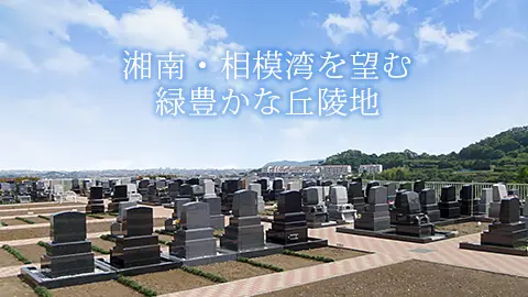 鶴巻霊園もえびのさとは、鶴巻温泉駅からバスで5分と徒歩2分。国道246号線からほど近い利便性と、豊かな自然に包まれた好環境を備えた理想的な立地の霊園です。丹波山系へと連なる豊かな緑を背に、南向きで日当たりが良い墓域から、伊勢原・平塚の街並みや相模湾までも眺望する大パノラマが広がり、大自然がもたらす圧倒的な開放感に満ちた空間です。