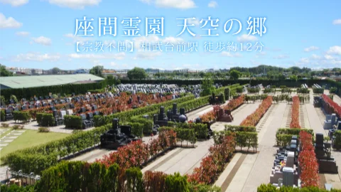 座間霊園天空の郷は、小田急小田原線「相武台前駅」より西に約1kmに立地。座間市内中心部に位置するこの霊園は、お車だけでなく電車やバスでのアクセスも快適。平坦で充分な参道幅を確保した完全バリアフリー設計で、豊かな緑と四季折々の草花に包まれた自然共生の公園墓地です。