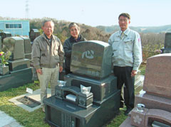 ■ 美郷石材鰍フ振屋様に初めてお逢いしたのはどしゃぶりの雨の日でした。 にもかかわらず、心よくメモリアルフォレスト多摩霊園内を案内頂き、雨の日は排水の良否が判断できるとのことなど、その後何度か見学させていただき、墓地改葬の件・墓地種類等をとても詳しく説明を受け、建墓を決定しました。